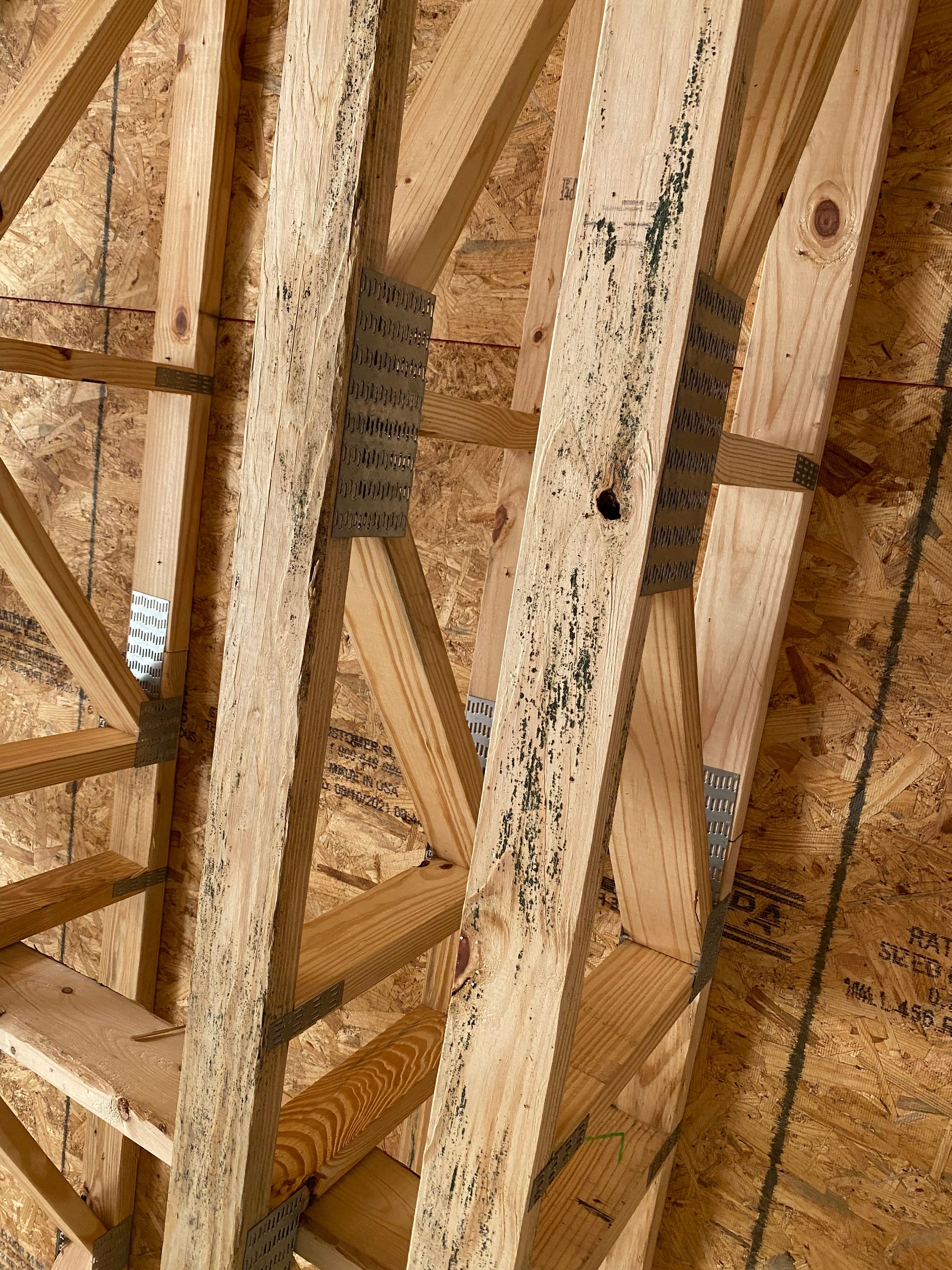 At the early construction phase, wood framing, sheathing, subfloor, drywall, and other organic building materials are highly susceptible to mold if they are exposed to moisture, for a even a short period of time. Within 48 – 72 hours of these materials first getting wet, there is a high possibility of mold growth occurring.